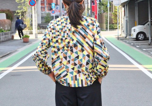 様々な形をちぎり絵でコラージュしたテキスタイル