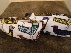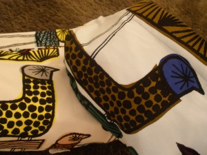 生地いっぱいに描かれた海鳥たちと