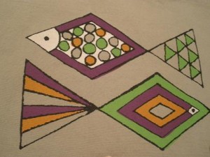 大胆な色使いと中央に大きく描かれたお魚さん!(・ε・。)
