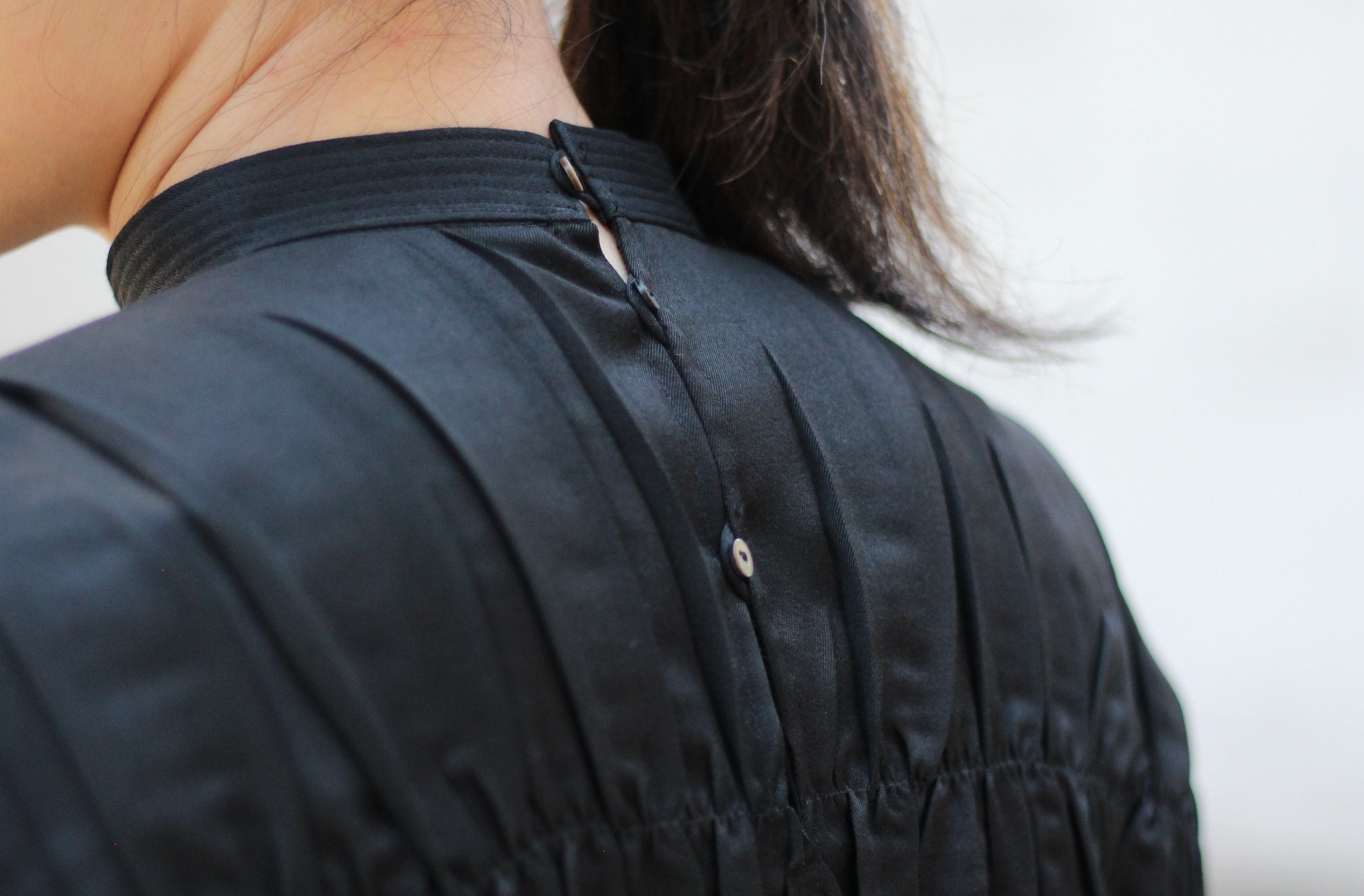 切替でゴムのステッチが入っていて大人な印象のシルエット。